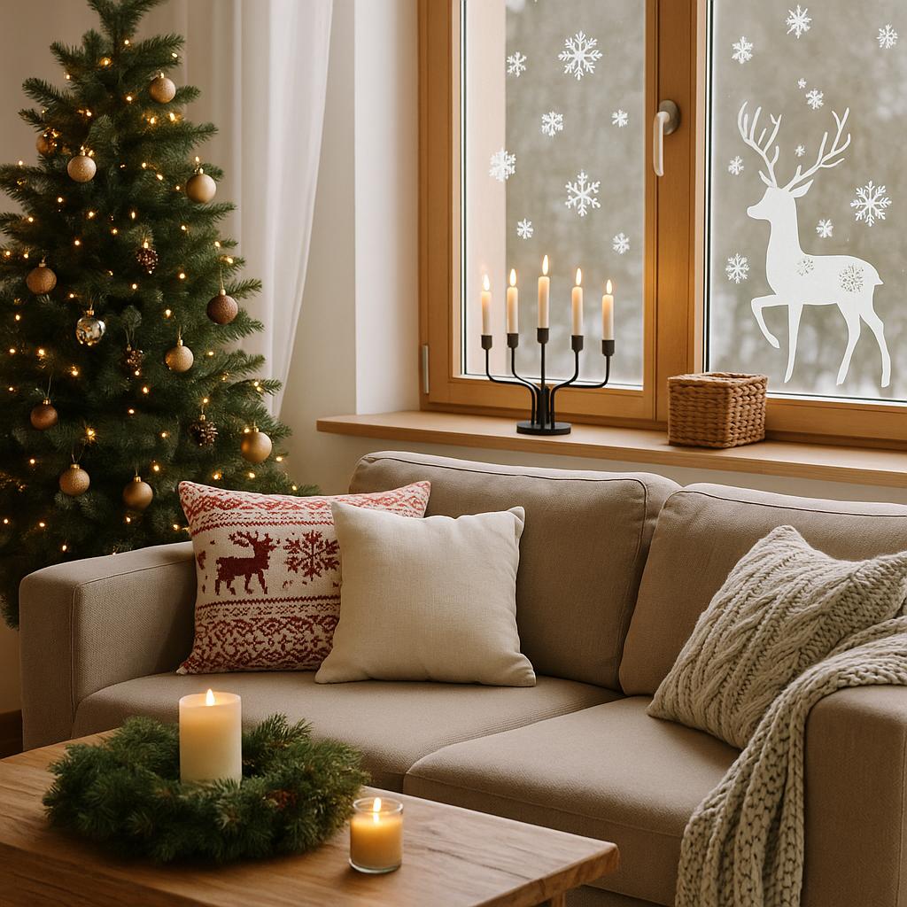 Зимний декор в этом году строится на сочетании простоты и индивидуальности. В моде натуральные материалы, спокойные цветовые палитры, мягкое освещение и элементы, сделанные своими руками. Простые решения вроде новогодних наклеек на стекла, натуральных венков или минималистичных гирлянд становятся основой праздничного оформления, которое легко вписывается в любой интерьер.